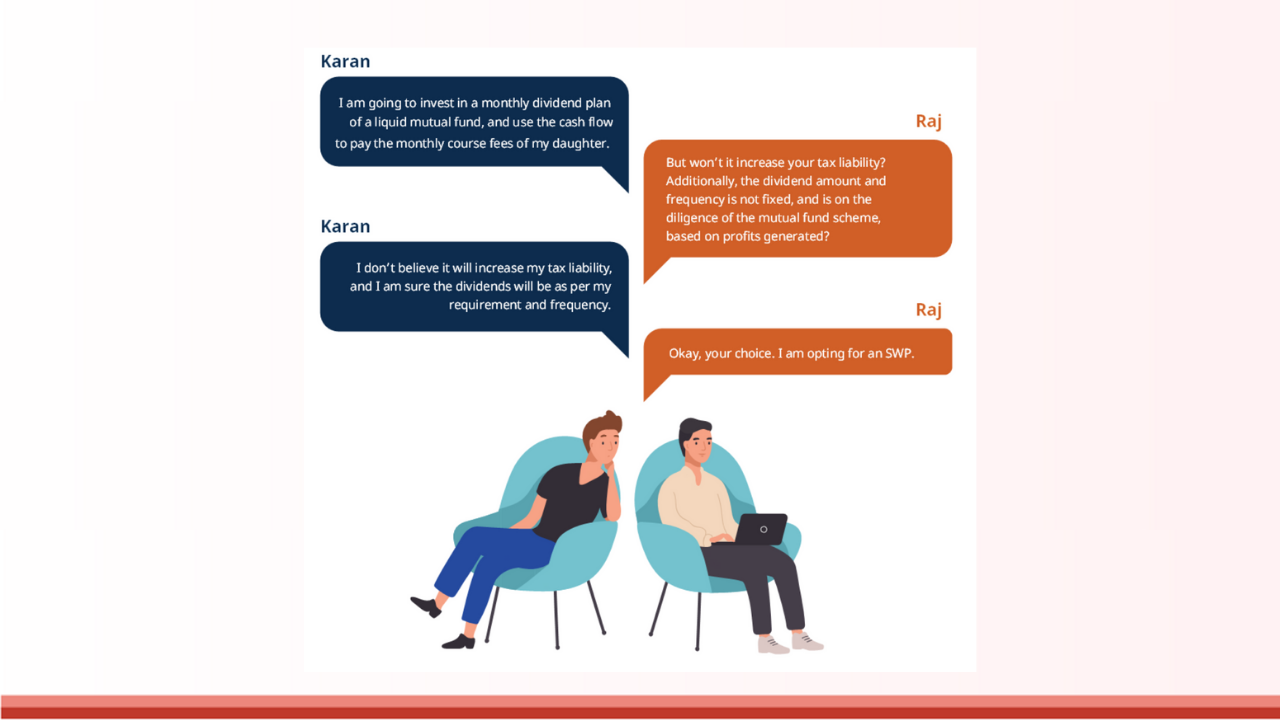 Post this discussion, both invest their money in liquid mutual funds, the difference being Raj invests in the growth option whereas Karan opts for the dividend option.